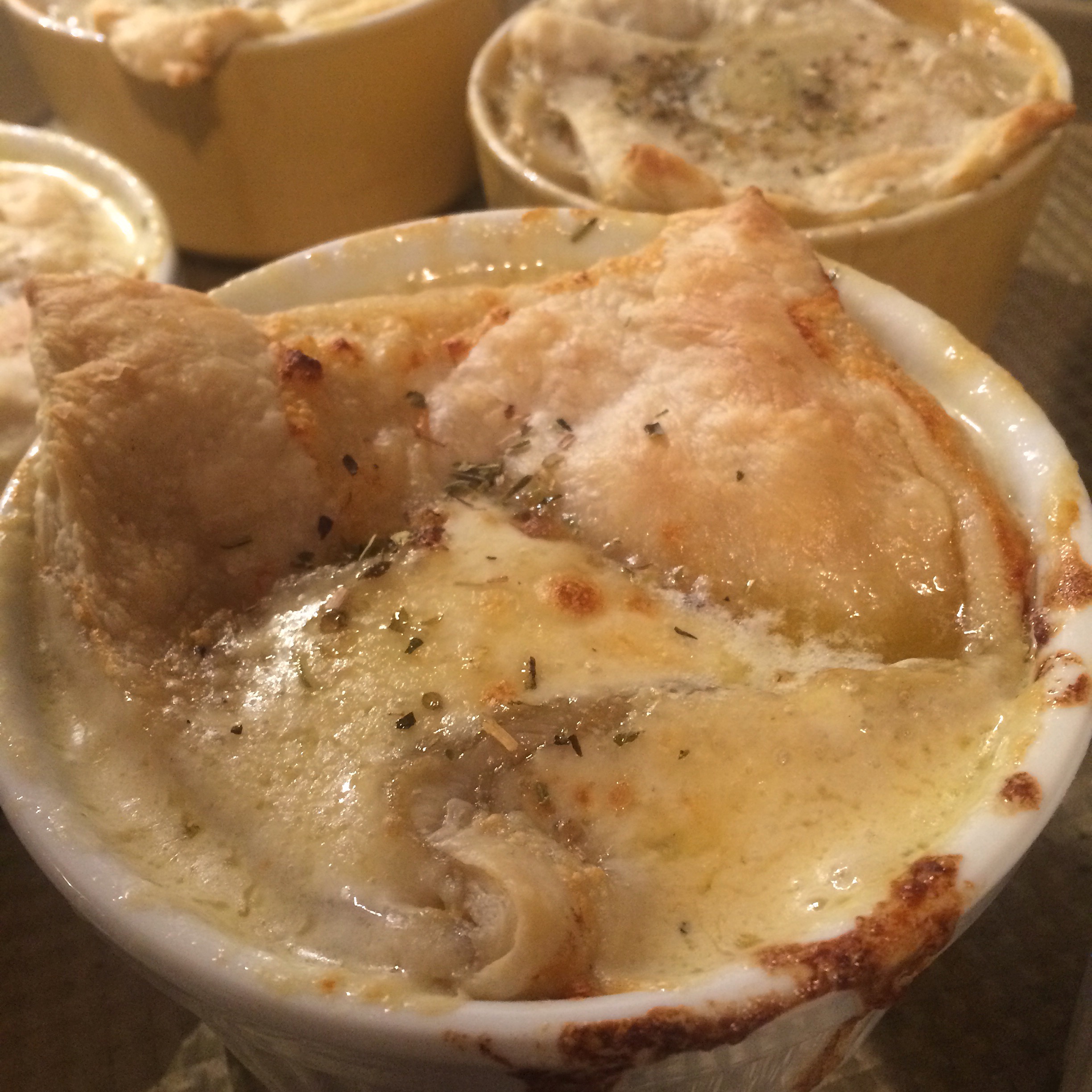 - Place ramekins on a baking sheet and put into the oven to cook for 15-20 minutes or until puff pastry/biscuit/pie crust has become crispy and golden.