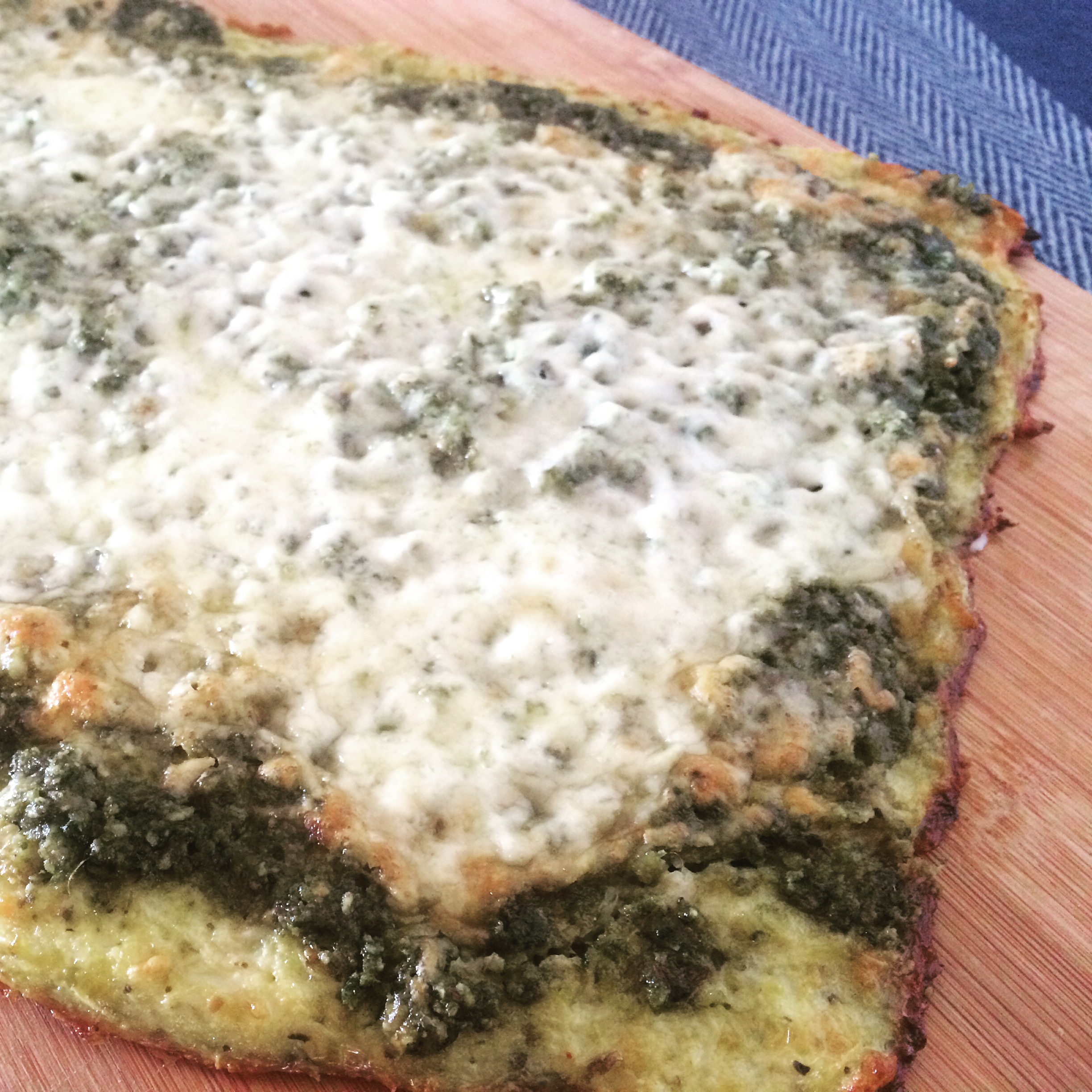 Last weekend I hosted a healthified and simplified Italian dinner workshop with roasted artichokes (with a lemon yogurt dipping sauce), peach and strawberry sangria AND this ridiculously easy cauliflower crust pizza with spinach pesto. My students were stunned at how easy it was to make this recipe and how few ingredients were required. This is not a recipe that will break that bank and that’s FAB! And as an added bonus, you won’t even notice the cauliflower. It’s a great way to get the kiddos to eat veggies without realizing it. And I dig that.