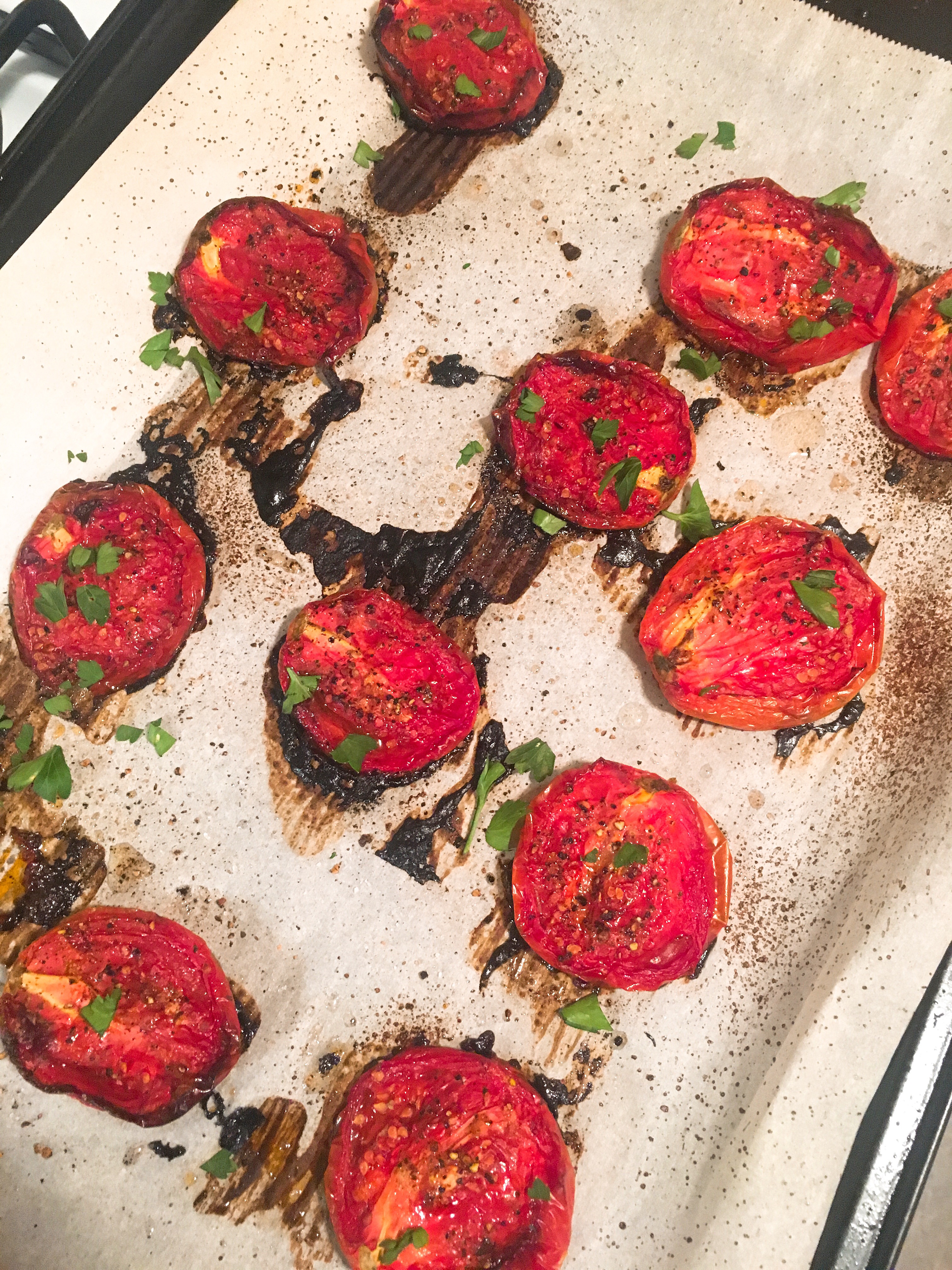 - Freshly cracked black pepper, to taste (I use about a tablespoon per tray of tomatoes))