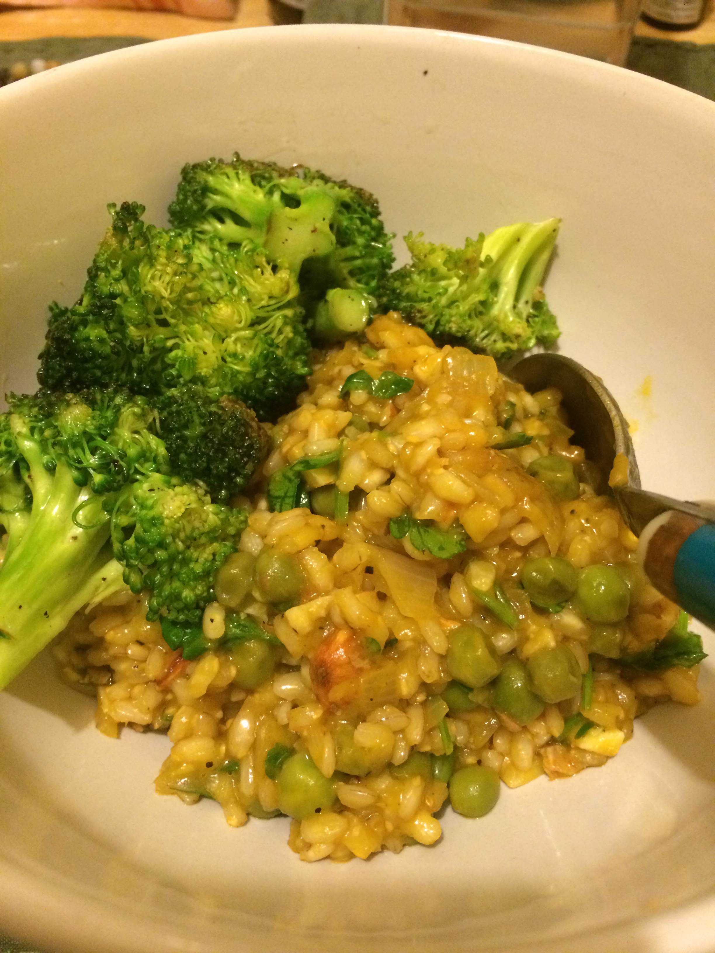 In 2011 after graduating from college, I went on a little Euro-trip with my best friend, Xiomara. As a food connoisseur (foodie for short), I was in heaven the moment we landed in Italy. One of my favorite dishes is risotto. The creaminess, the heartiness as well as the love and soul that goes into a great bowl of risotto makes my taste buds and heart sing. I have to admit, it is a tedious and exhausting process. Traditionally risotto calls for wine but we didn’t have any on hand so we just added a little more veggie stock. If you can get the wine, bring it! It adds another dimension of flavor. Get ready for a delicious meal and arm workout!